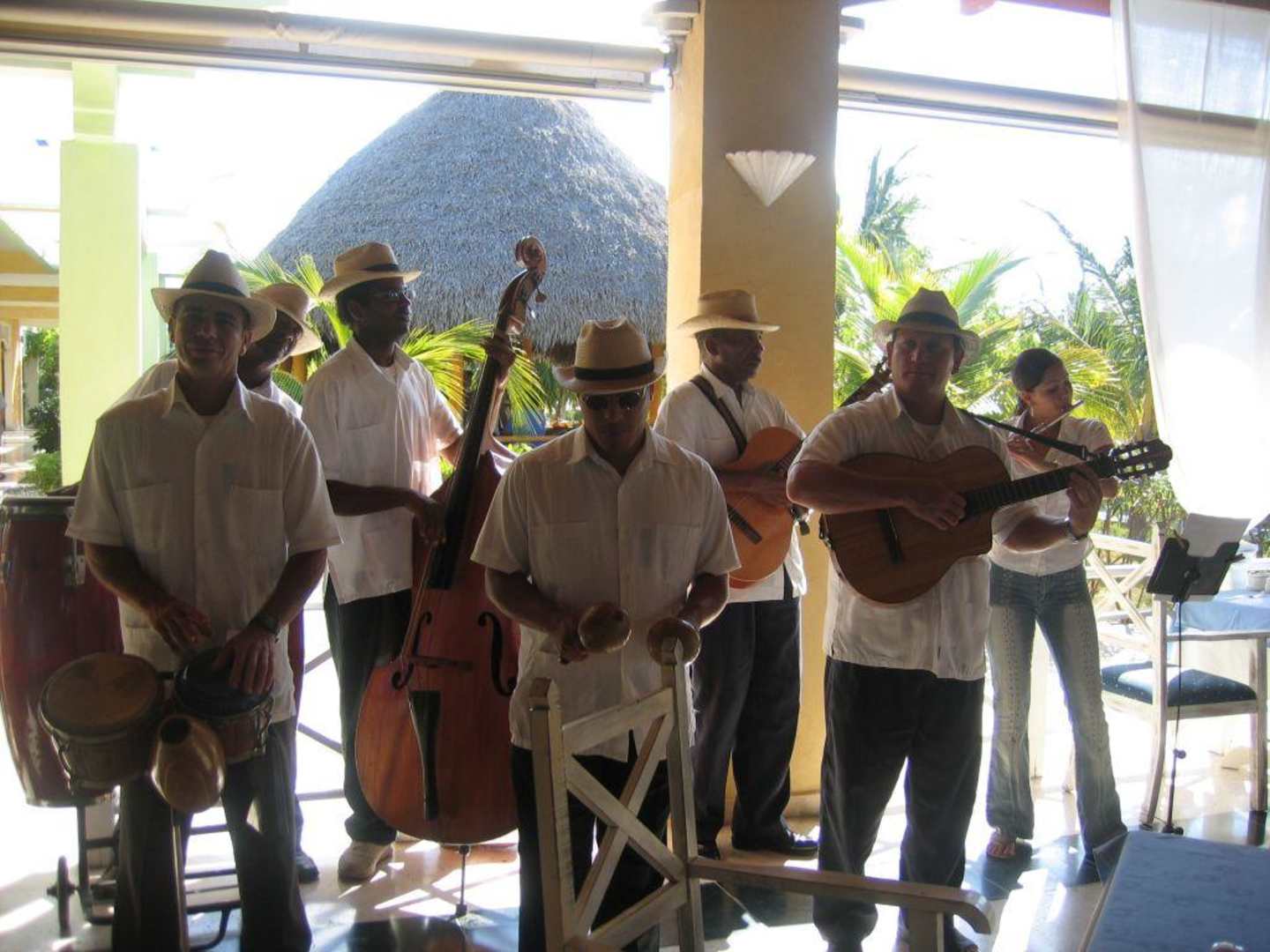 Im Hintergrund (Strohdach) ist die Hotelbar zu erkennen