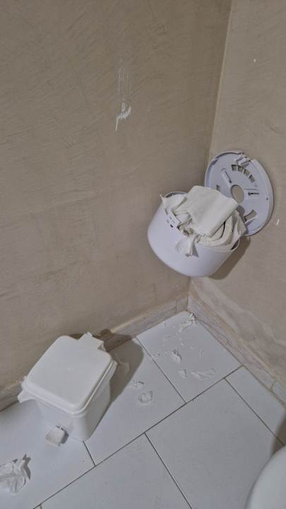 Müll und kaputter Toilettenpapierhalterung