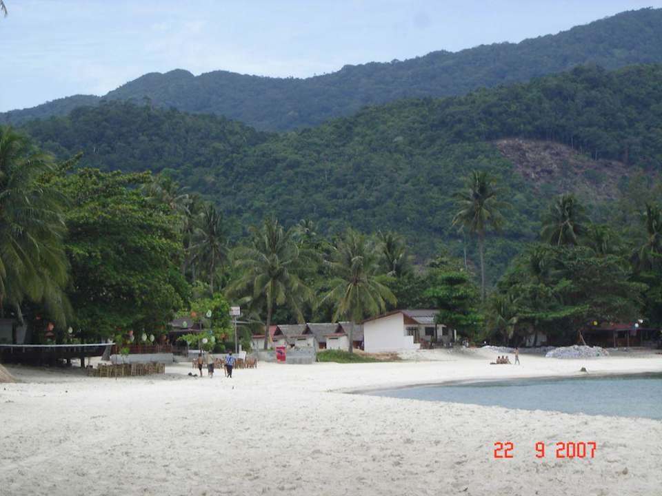 Das weisse Haus in der mitte des Bildes ist der Beachbungalow