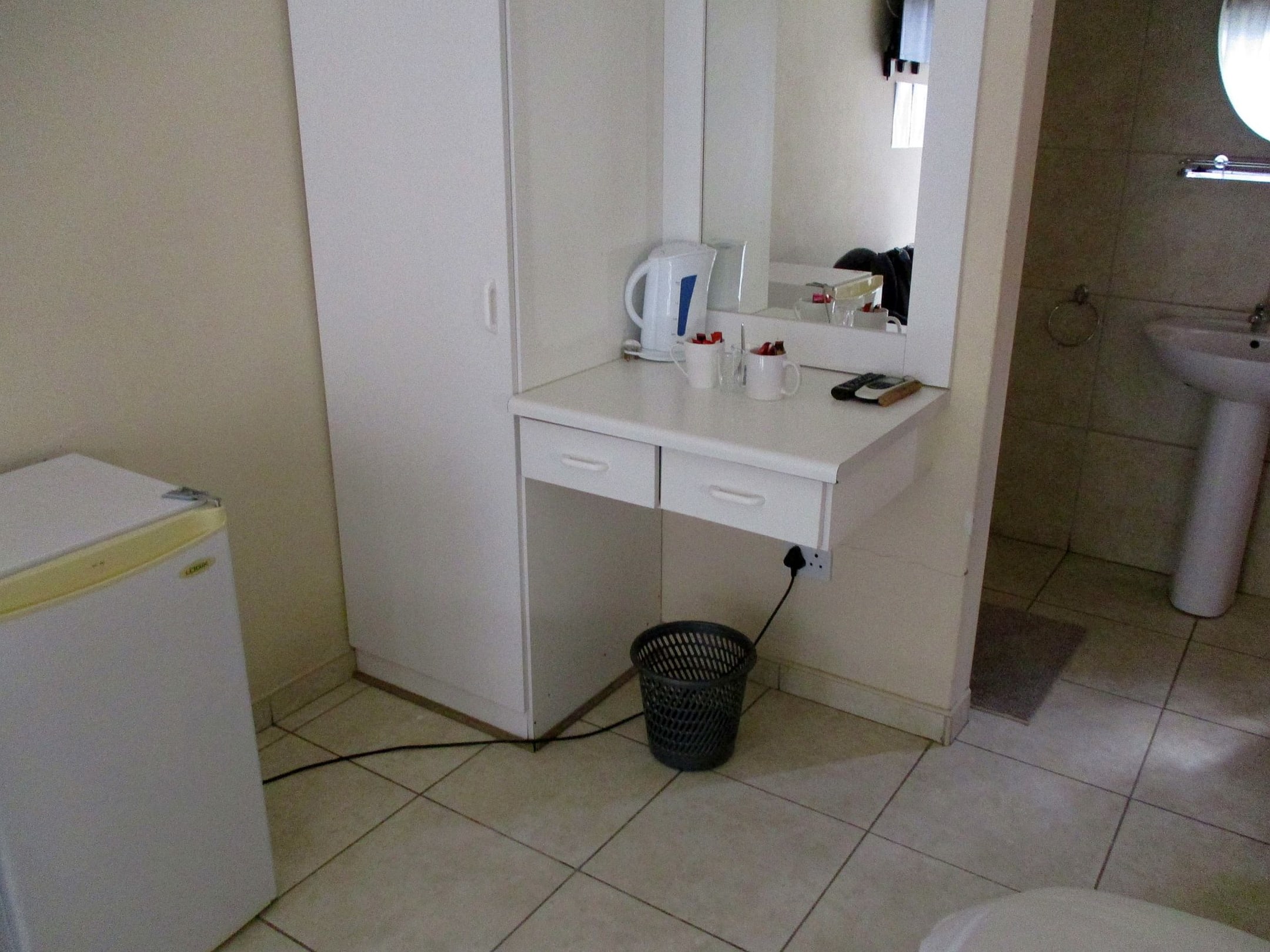 Kaffeekocher und Kühlschrank vorhanden