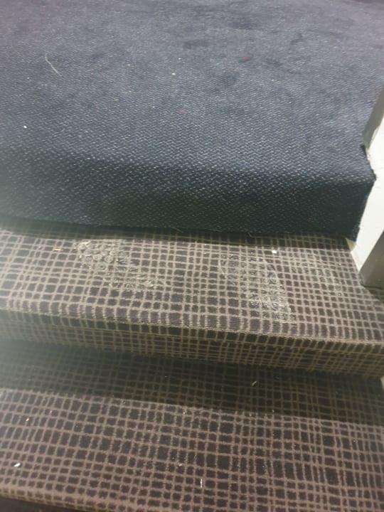 Treppenaufgang - die Fußspuren waren den ganzen Aufenthalt lang da.