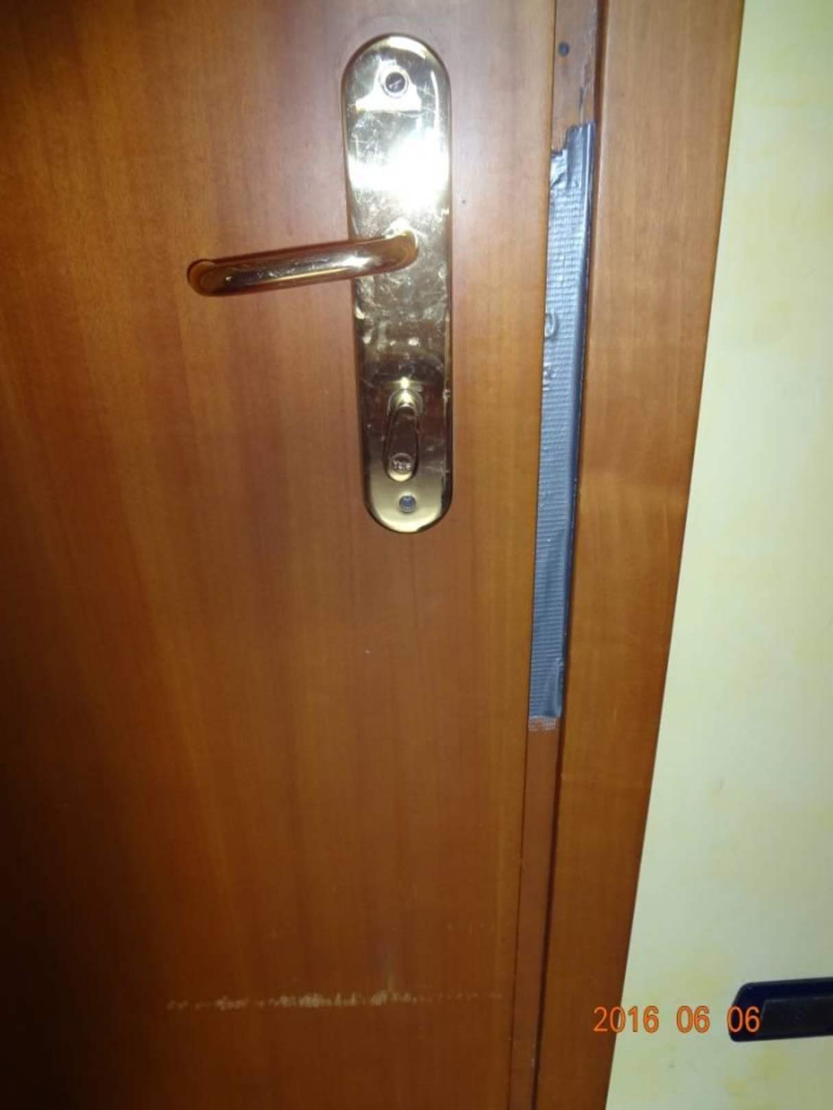 Schließblech mit Panzertape verankert