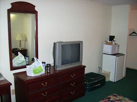 Auch wenn hier ein bißchen lieblos platziert, Kühklschrank und Microwelle waren vorhanden