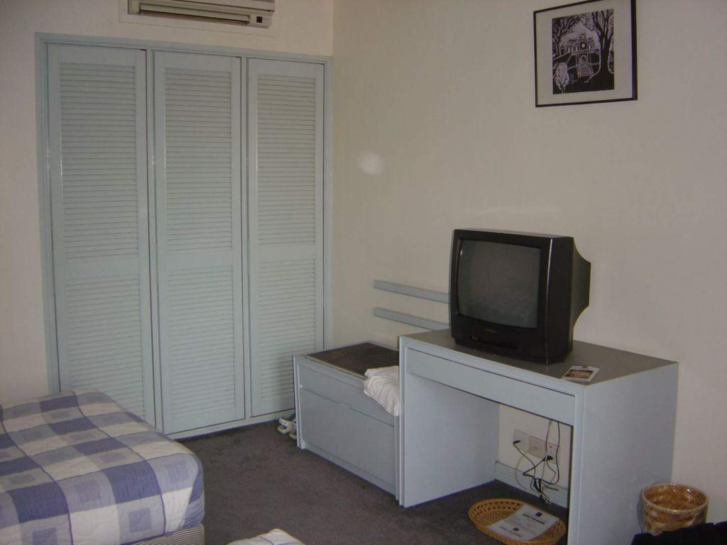 Schlafraum mit Schrank und TV