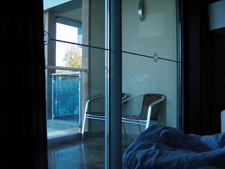 Blick aus Zimmer auf Balkon