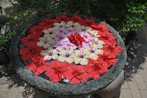Kazdego dnia nowa piękna aranżacja kwiatowa w ogrodzie hotelu