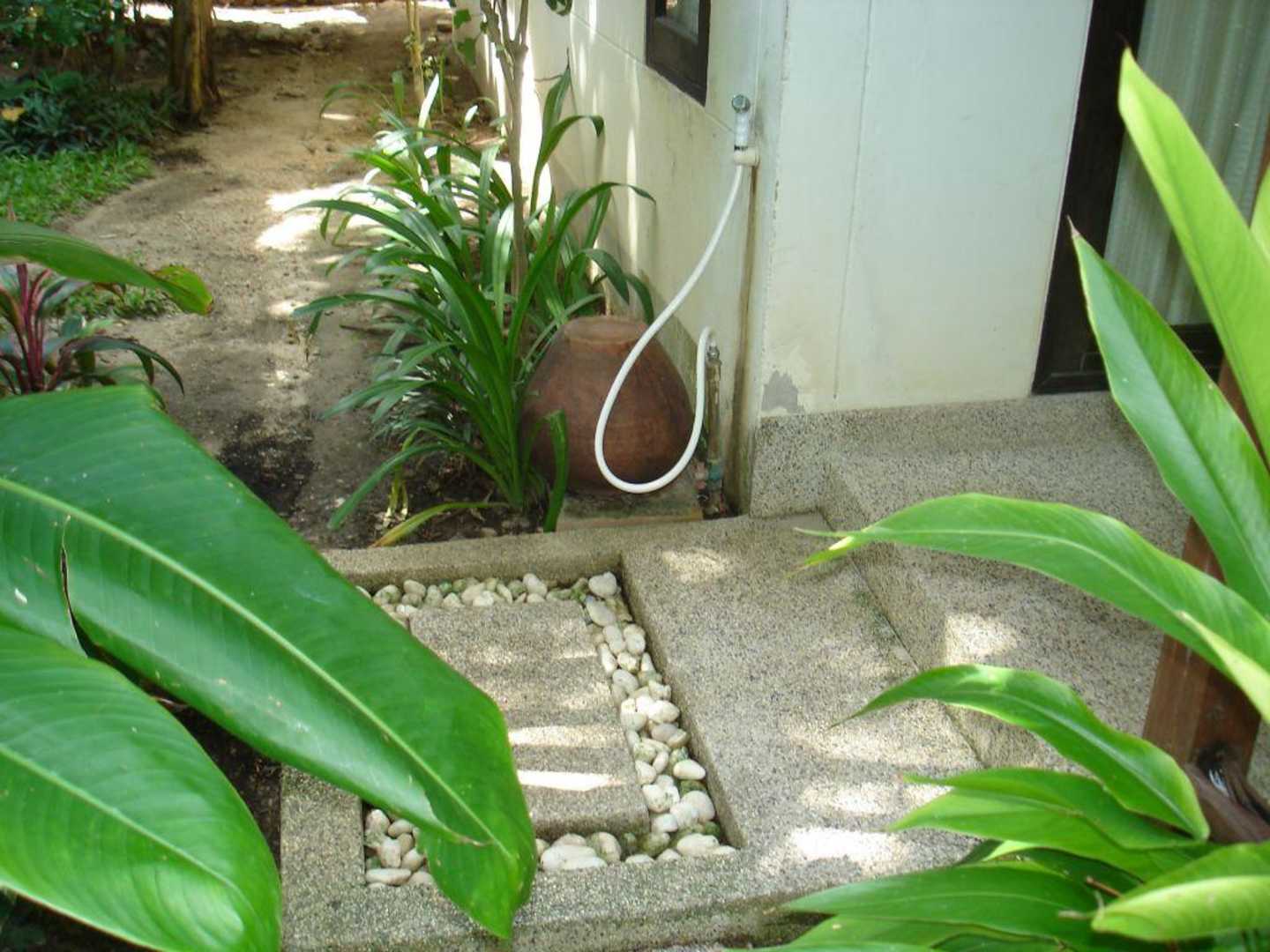 Der BungaloweingangDirekt am Bungaloweinganggibt kleine Duschen für die Füße. Thailänder gehen in jedes Haus ohne Schuhe. Auch wir haben versucht unsere Schuhe draußen zu lassen. Wenn wir vom Strand oder von der Straße gekommen sind konnten wir den Dreck und den Sand mit der Dusche super sauber machen.