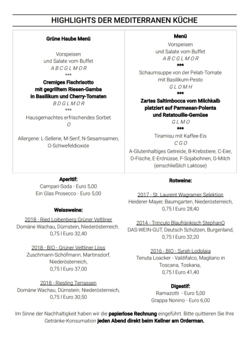 Menüauswahl im August 2021