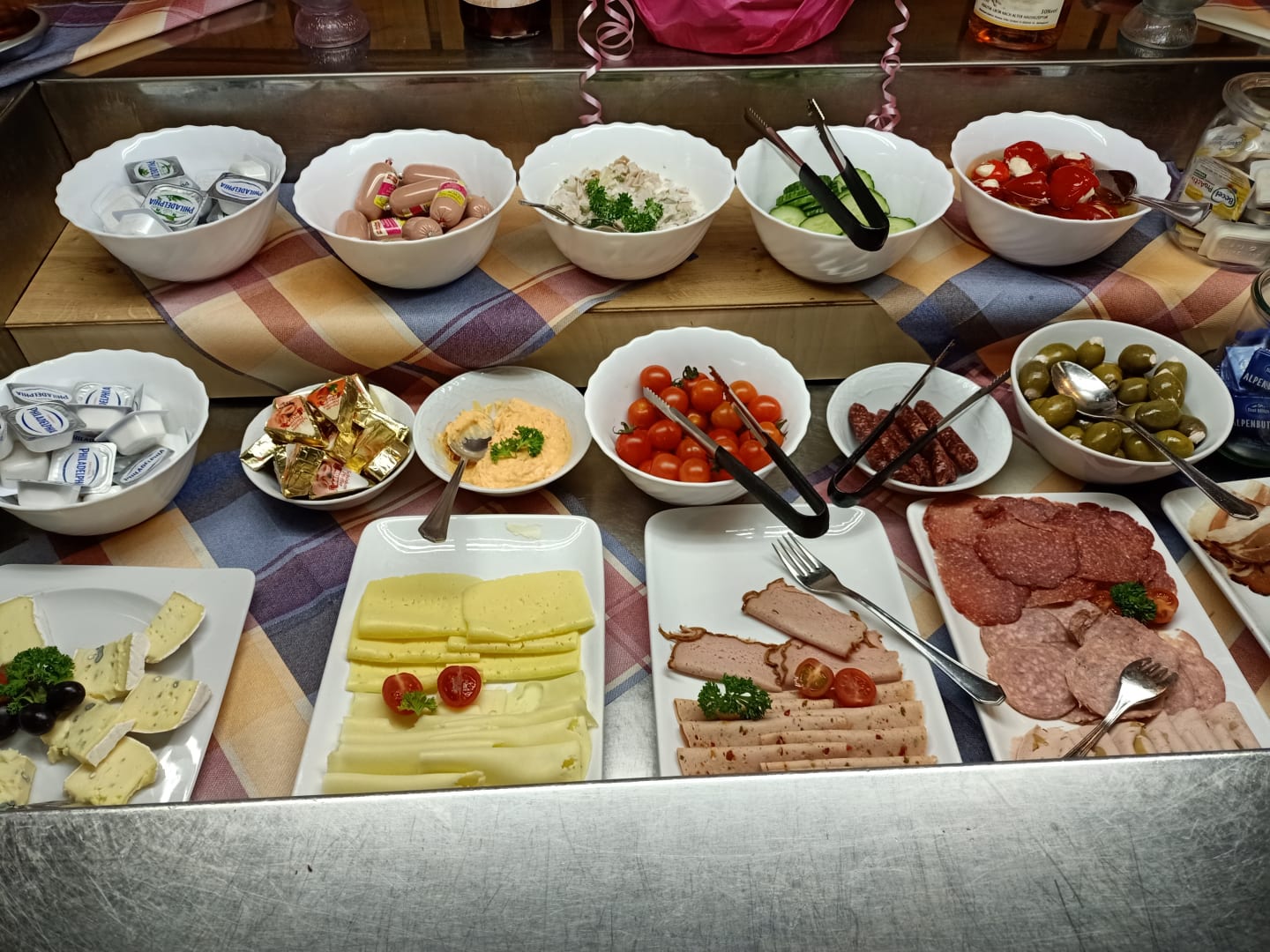 Frühstück. Blick in die Kühltheke.