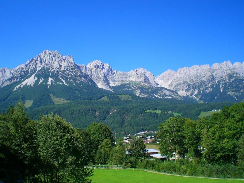 Blick auf den Wilden KaiserDiesen Blick kann man von der Aussenterasse vor dem Hoteleingang genießen.