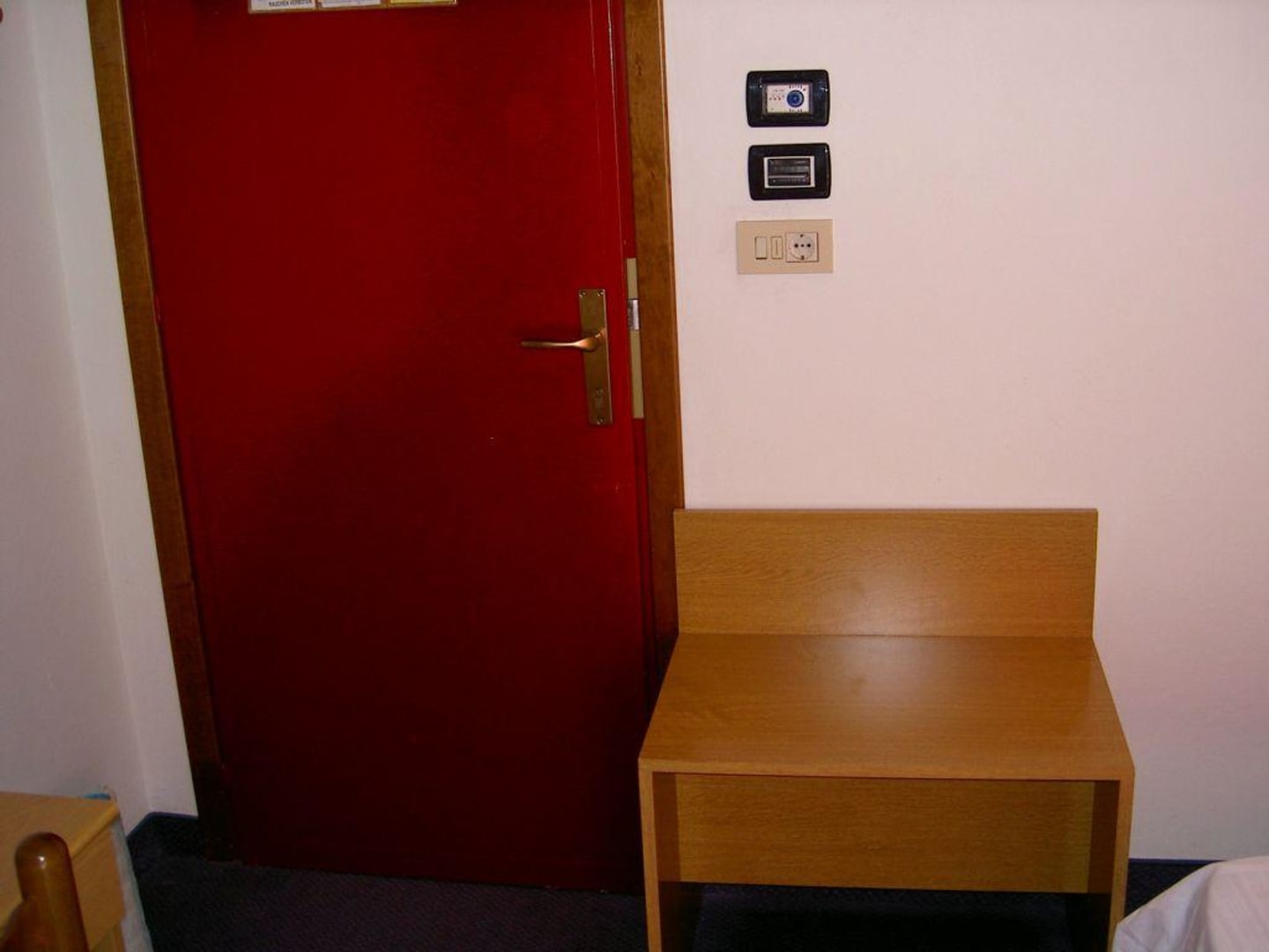 Zimmer Hotel Ciao: Eingangstür und daneben eine Ablagefläche für Gepäck