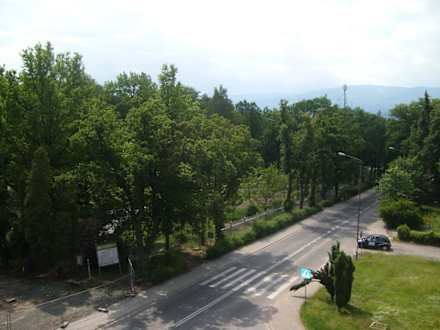 Aussicht vom Zimmer auf Straße und Park