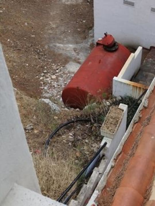 Die Kerosindämpfe ausstoßende Maschine Die Kerosindämpfe ausstoßende Maschine unter dem Fenster des Zimmers.