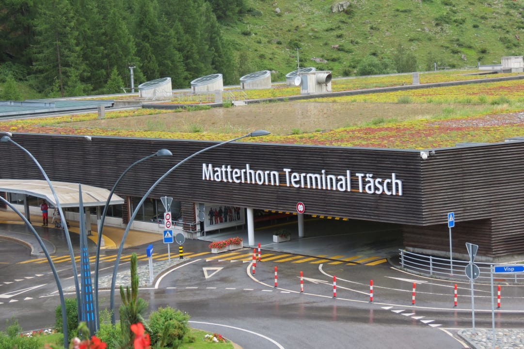 Blick auf den Terminal,von dem aus der Chattle-Zug nach Zermat geht