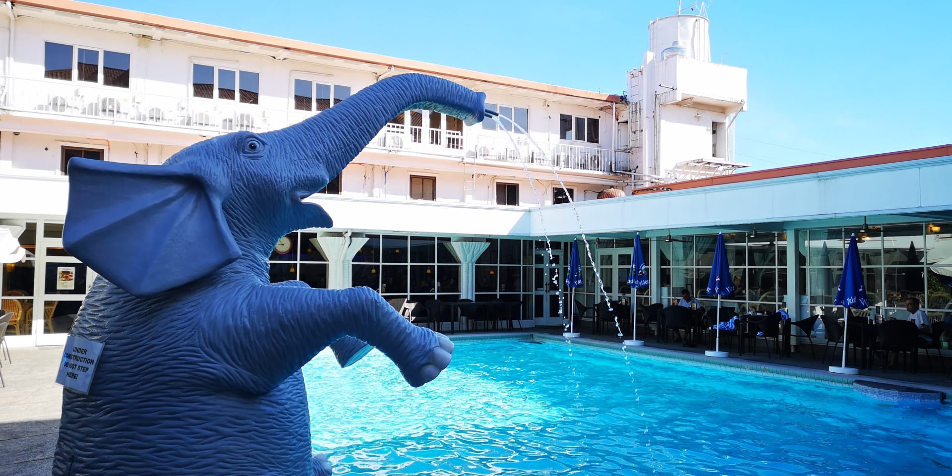 Grosser Pool im Clarkton mit Elefant.