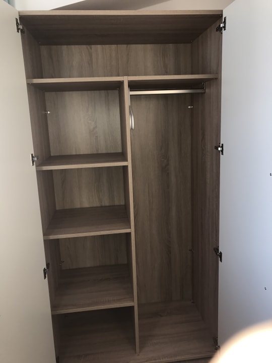 ZimmerSchönes großes Zimmer mit Sessel, Spiegel, Schreibtisch, Schreibtischstuhl, Garderobe, Kleiderschrank, Flat-TV