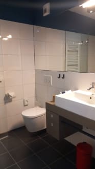 Schönes Bad, gute Größe, bodengleiche Dusche