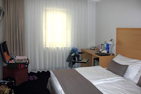 Winziges Zimmer mit ziemlich kurzen Betten und Blick in den Hinterhof, Hotel Clement, Prag
