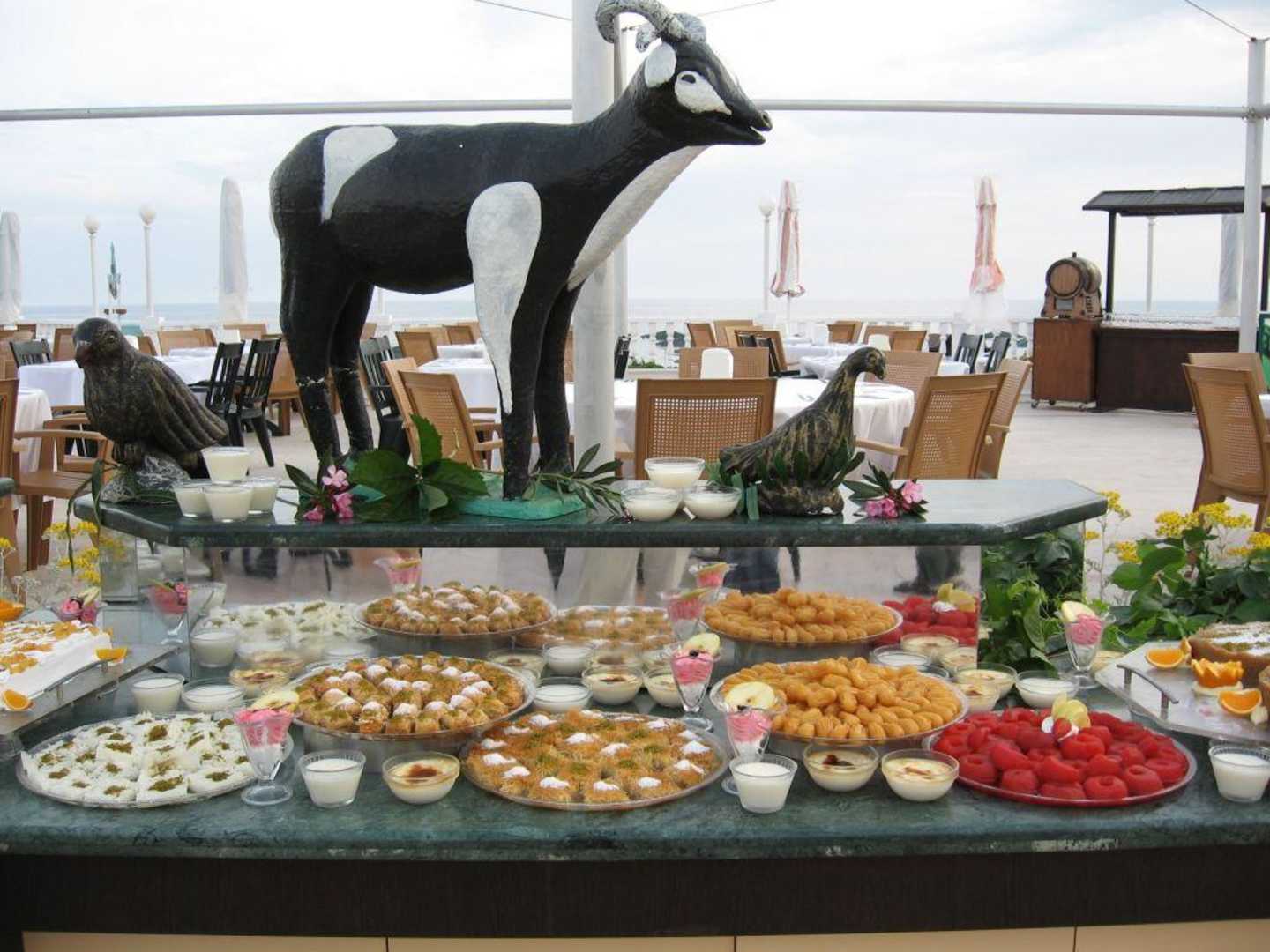 Kleiner Ausschnitt des Kuchenbuffet beim wöchentlichen Galadinner rund um den Pool.