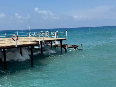 Hoteleigener Steg ca 70 Meter mit ca 400 qm Plattform für Liegen