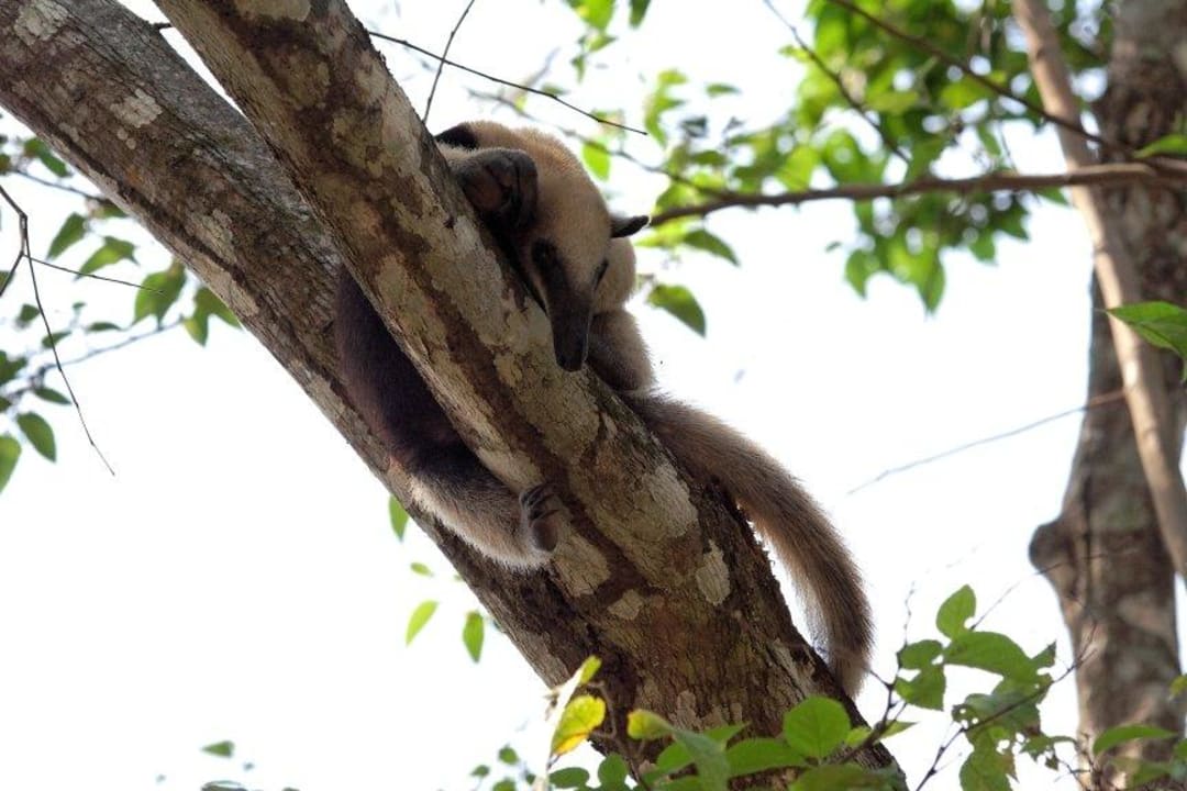 Junger Ameisenbär in einem Baum direkt an der Rezeption.