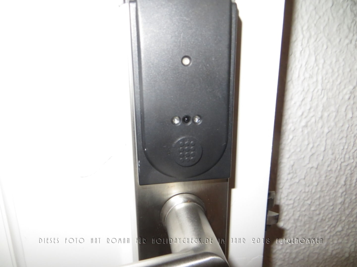 Der Leseteil für die Transponderkarte am Omnitec Türschloss, fotografiert vom Hotelflur aus.