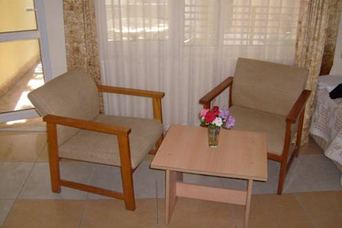 Zimmer gemütliche Sitzecke im Zimmer und ein kleiner Blumenstrauß von der Reinigungskraft. Frisch gepflückt aus dem Garten. Wirklich super nett.