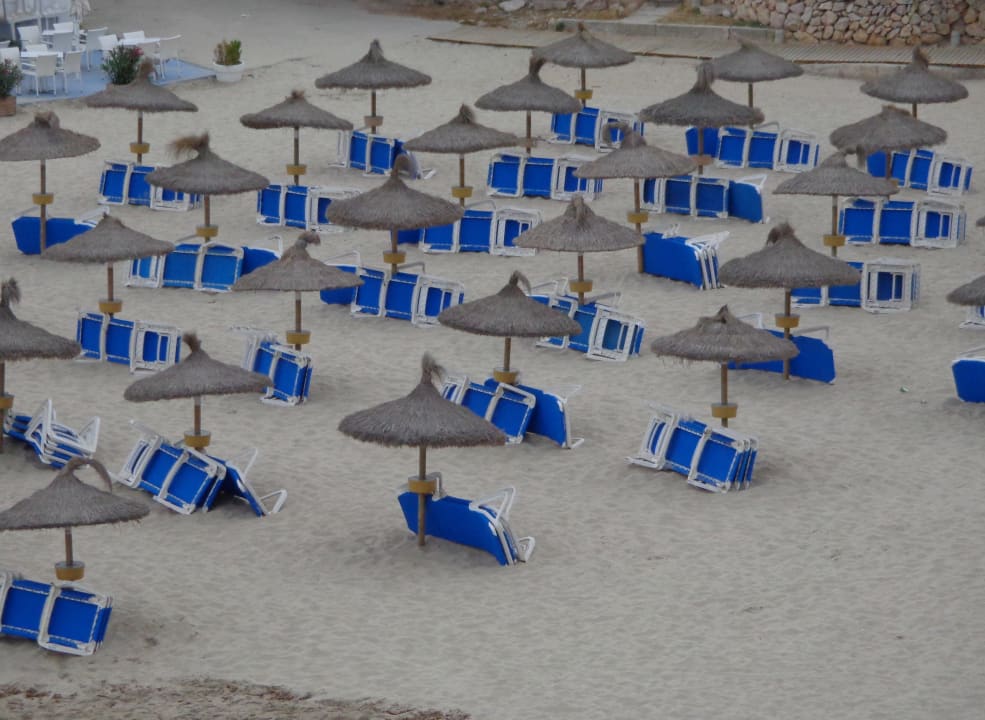 Zwei Liegen mit Schirm kosten zur Zeit 11Euro 80cent pro Tag.