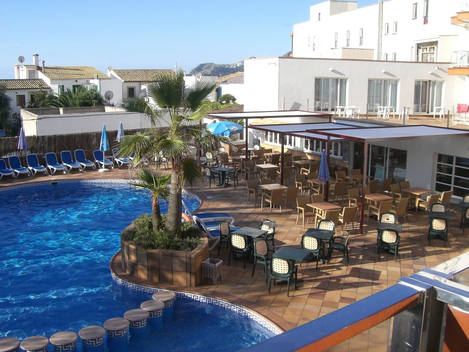 Blick auf Pool und Außenansicht Bar