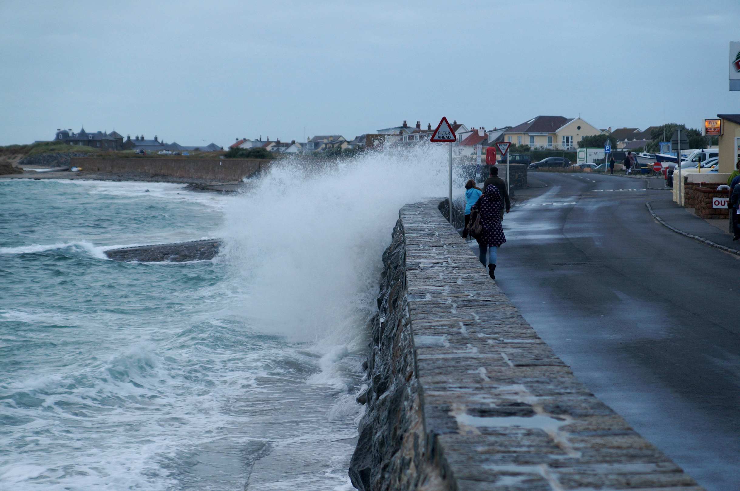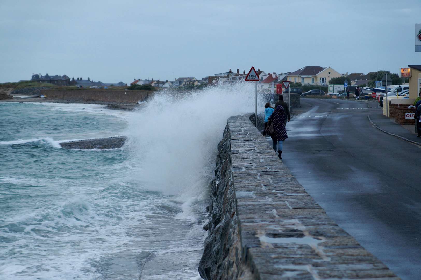 Strandpromenade bei Hochwasser + Starkwind