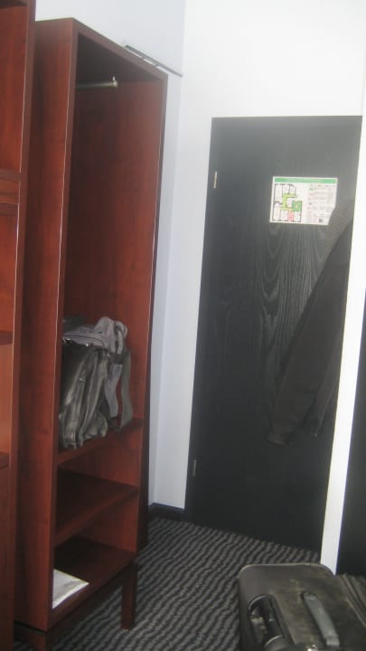 Wenn man zum Zimmer hereinkommt, ist rechts ein Kleiderschrank.