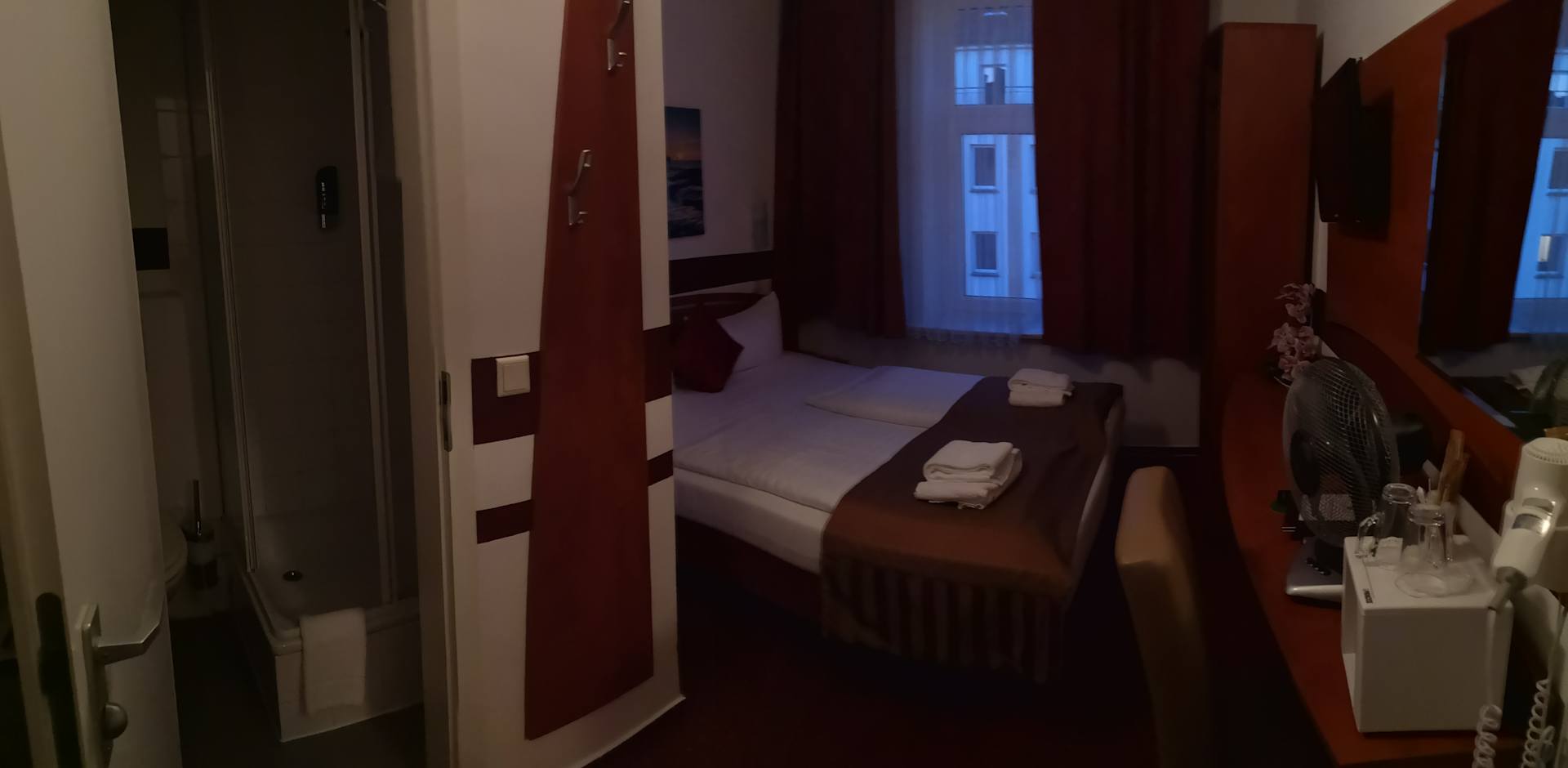 Zimmer im 4. OG. Klein aber dafür sauber. Bad ist ca. 1.5m2