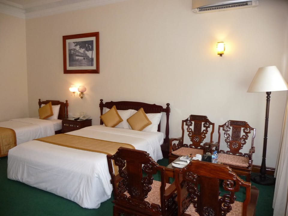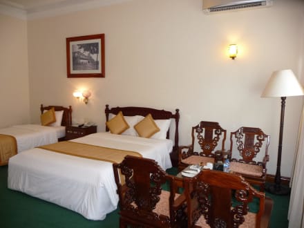 King- und Queensize Bett und SitzgruppeIn dieser Zimmerkategorie stehen ein Kingsize und ein Queensize Bett zur Auswahl. Die Größe des Zimmers rechtfertigt die Belegung von drei Personen.
