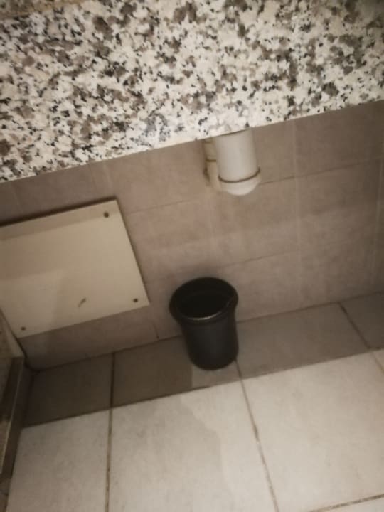 ZimmerWasserleitung beim Waschbecken undicht, es wurde einfach das einzige kleine Mülleimerchen darunter gestellt. Müll legten wir auf den Boden