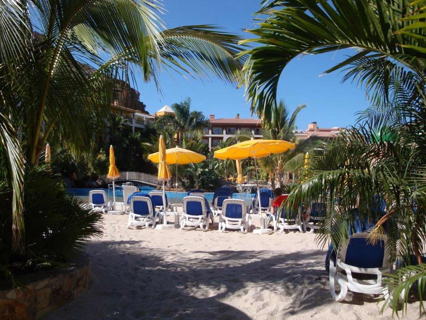 Pool mit Sandstrandnicht unbedingt eine gute Idee - da der Sand natürlich auf die umgebenden Fliesen kommt - aber es wurde immer sauber gekehrt