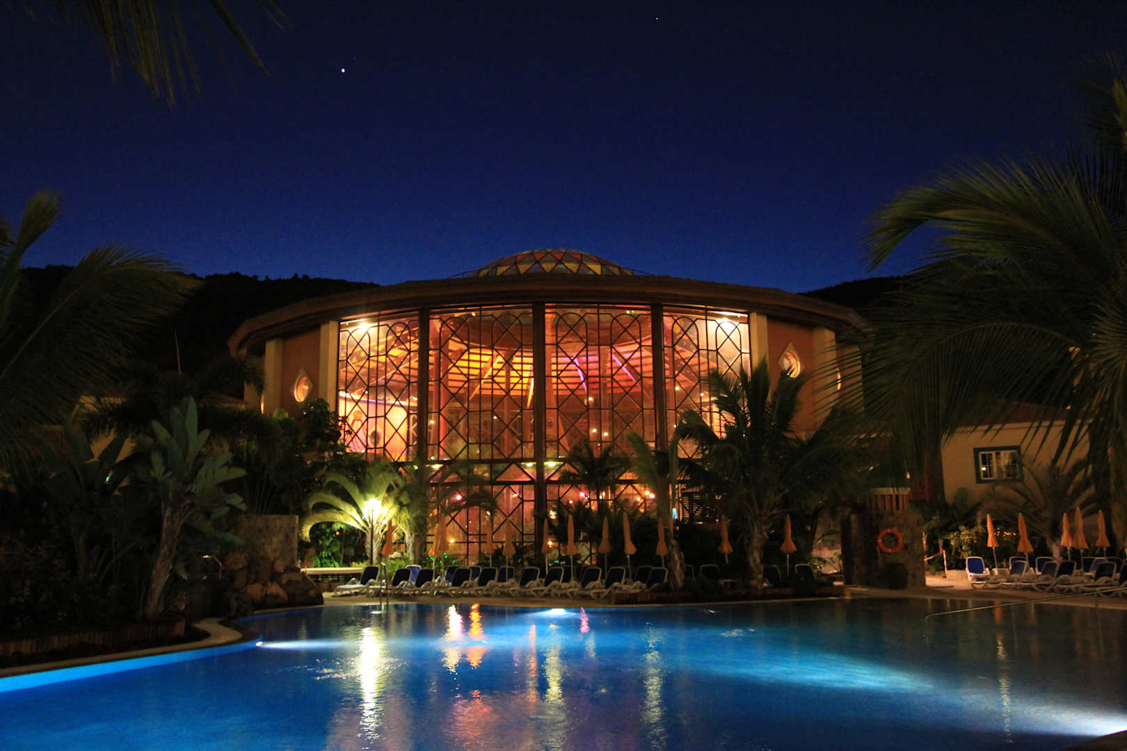 Blick über den Pool zur Eingangshalle