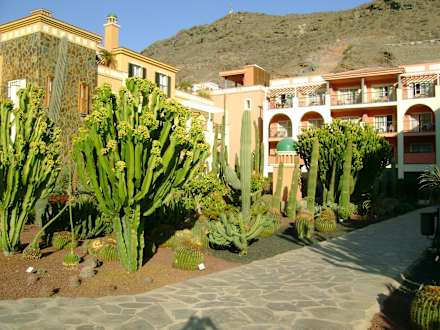 Kakteengarten mit Blick auf das Hotel