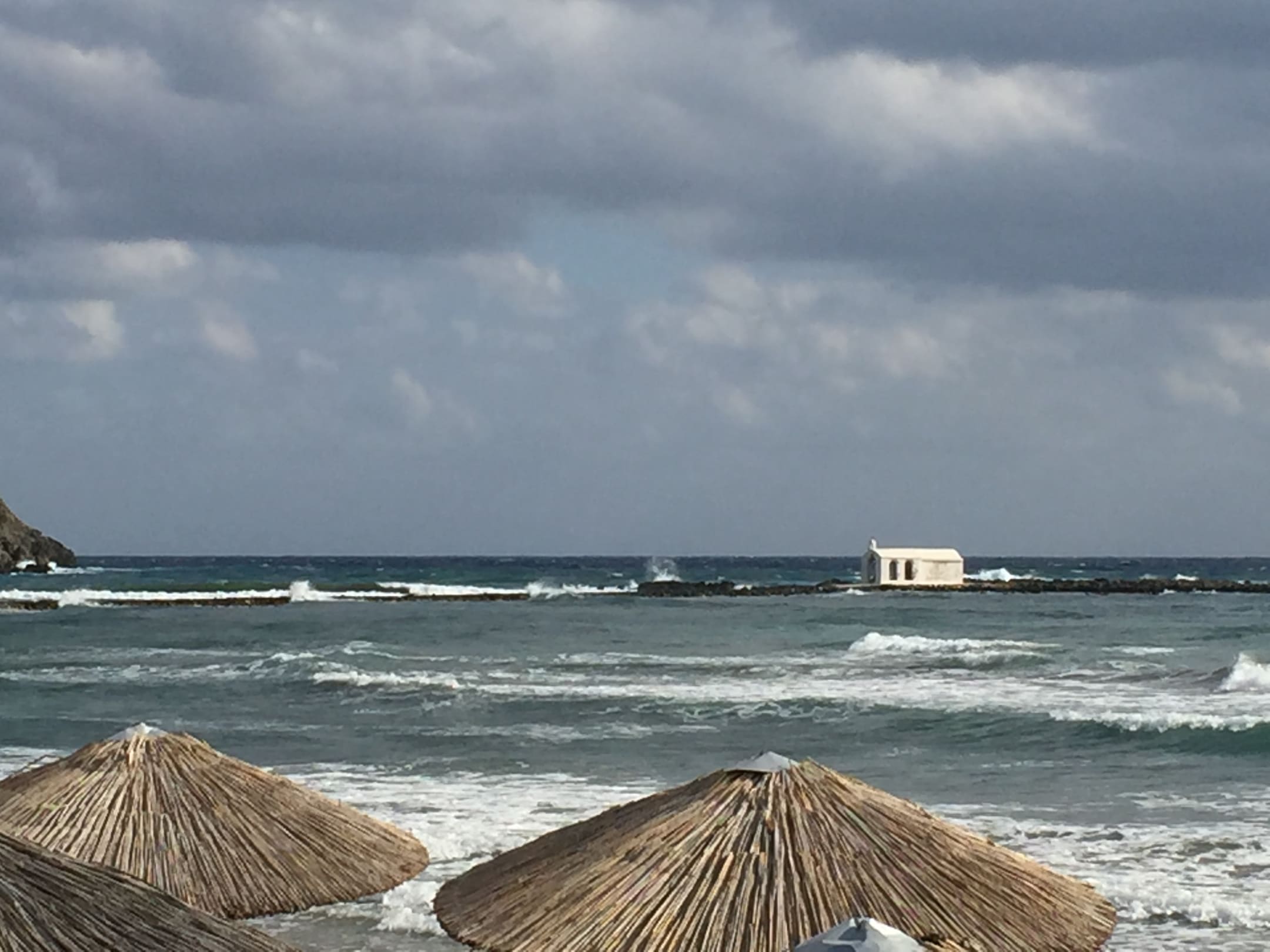 Blick vom Strand auf kleine Seefahrerkapelle, die man zu Fuß erreichen kann.