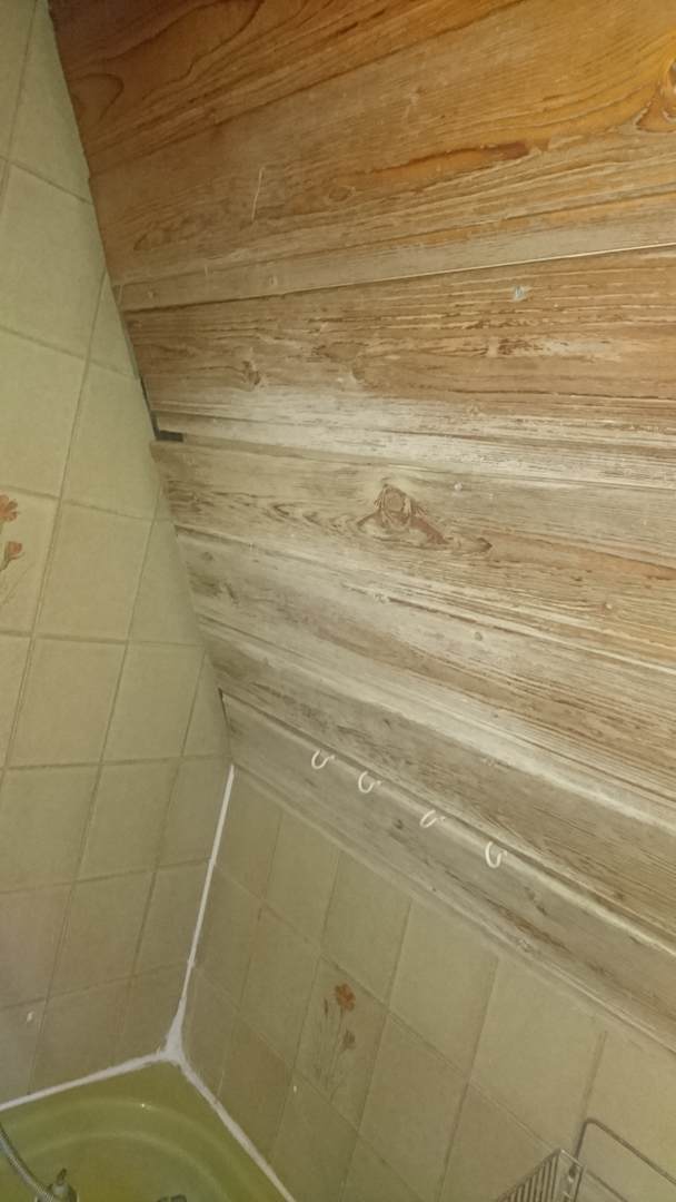Schräge über der Badewanne Holz und alles kaputt