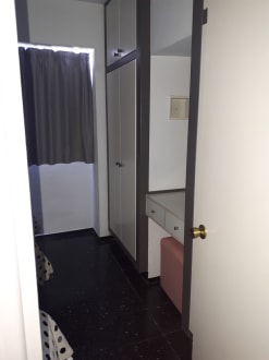 Schlafzimmer mit großen Stauablagen (Schlafzimmerschrank).