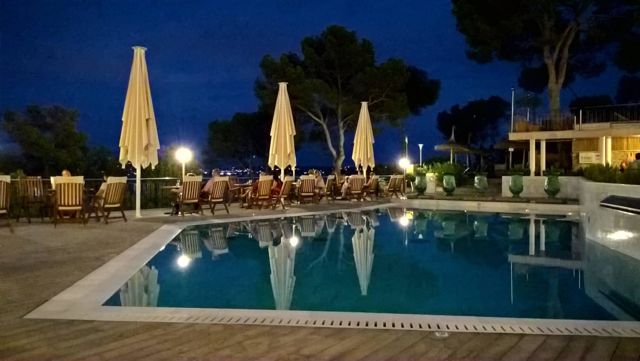 Familypool mit Barterrasse am Abend