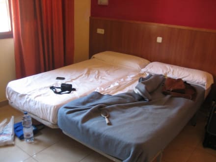 Zwei Einzelbetten, die wir zusammengeschoben haben.