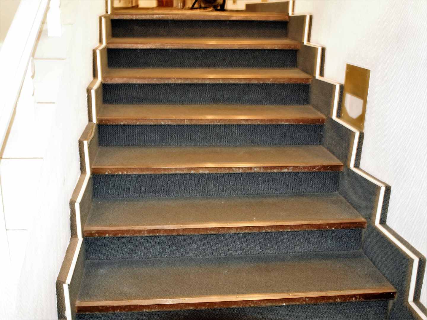 Schody. Zaniedbany, brudny mosiądz.