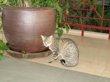 Hier ist eine der Katzen die sich in der Hotelanlage befindet. Sie war nachher so anhänglich, das sie bei uns vor der Zimmertür geschlafen hat!