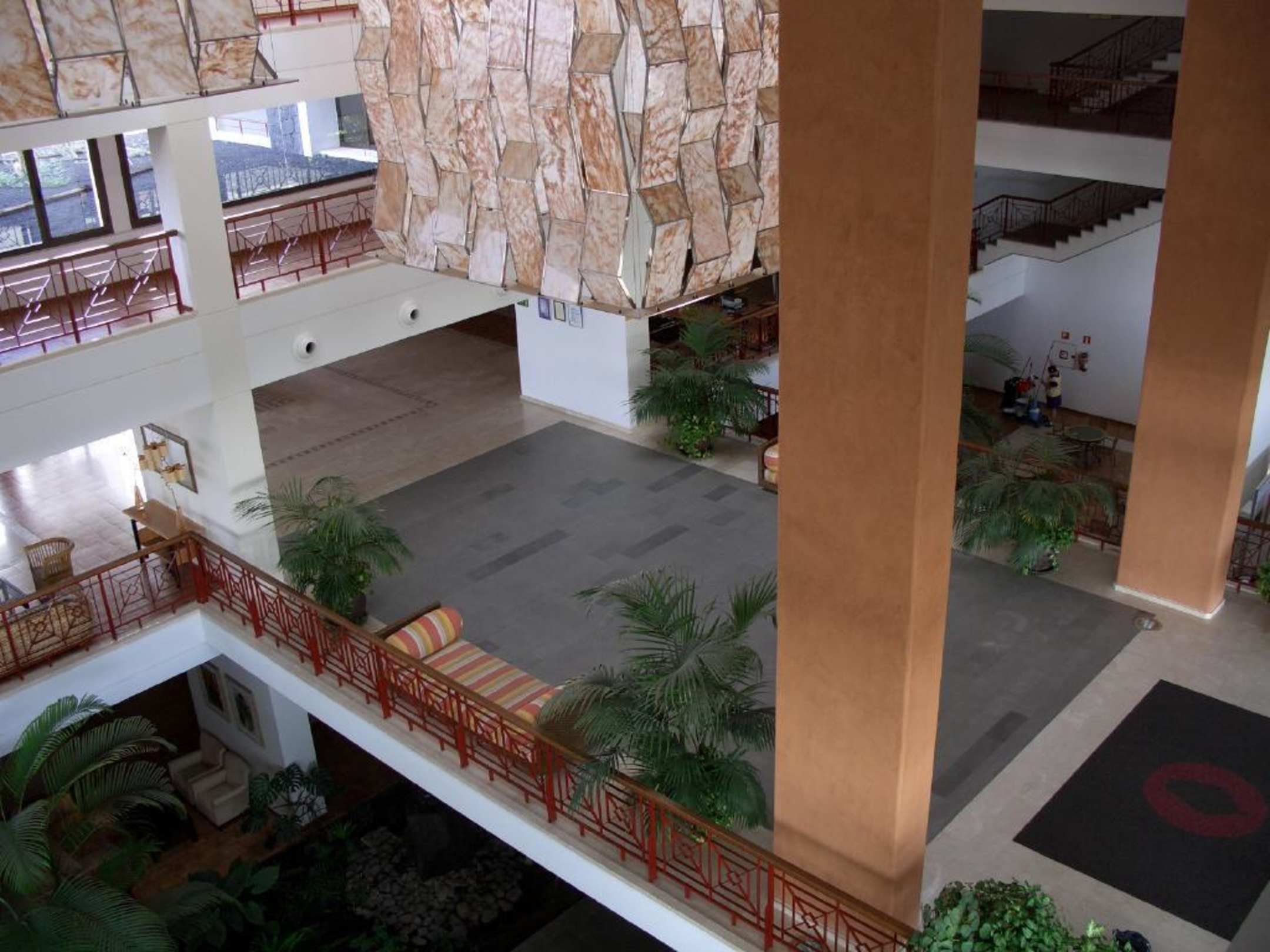 Dei Eingangshalle ist großzügig und offen über mehrere Stockwerke gestaltet.