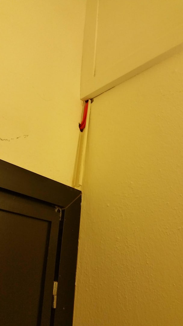 Offene Stromleitung über der Tür