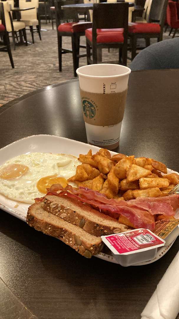 Das Frühstück ist sehr lecker. Man bestellt es an der Theke und es wird dann zum Tisch gebracht. Aber es gibt kein Buffet oder Kaffee aus Porzellantassen.