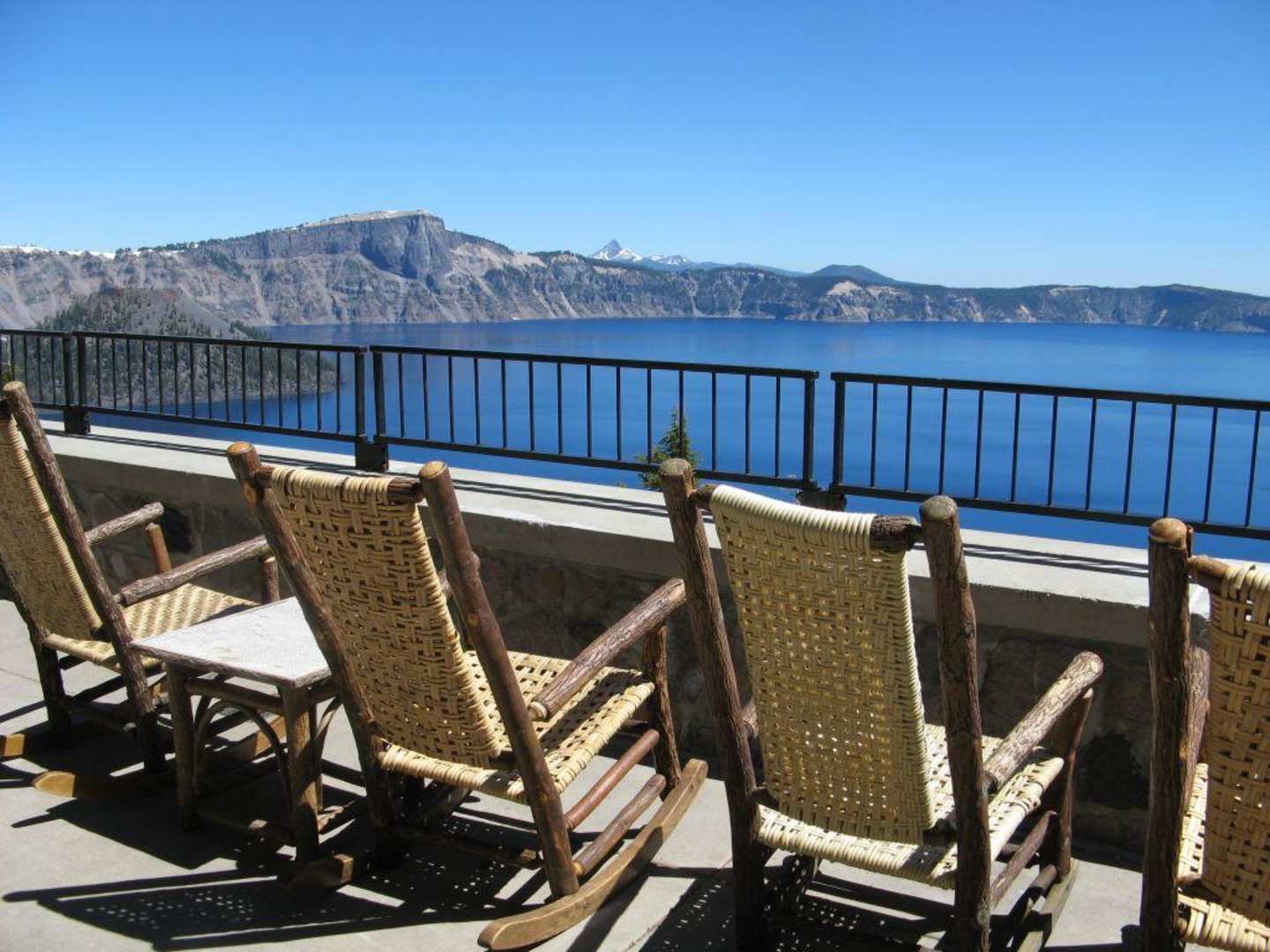 Crater Lake Lodge: Terrasse mit Seeblick