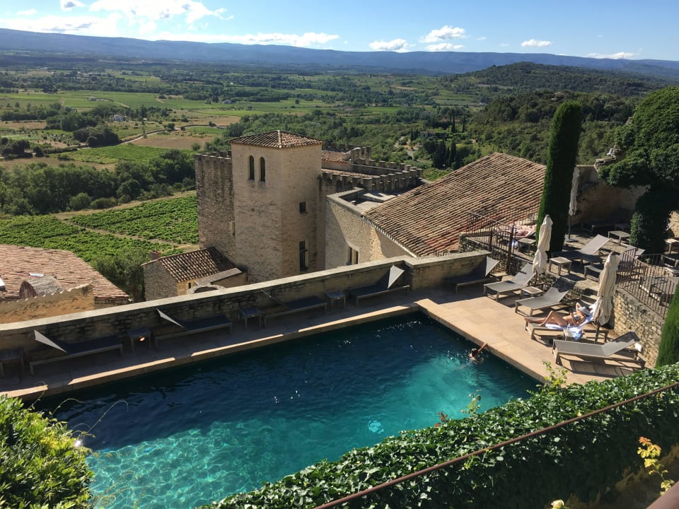 Blick von einer der vielen Terrassen auf den Pool