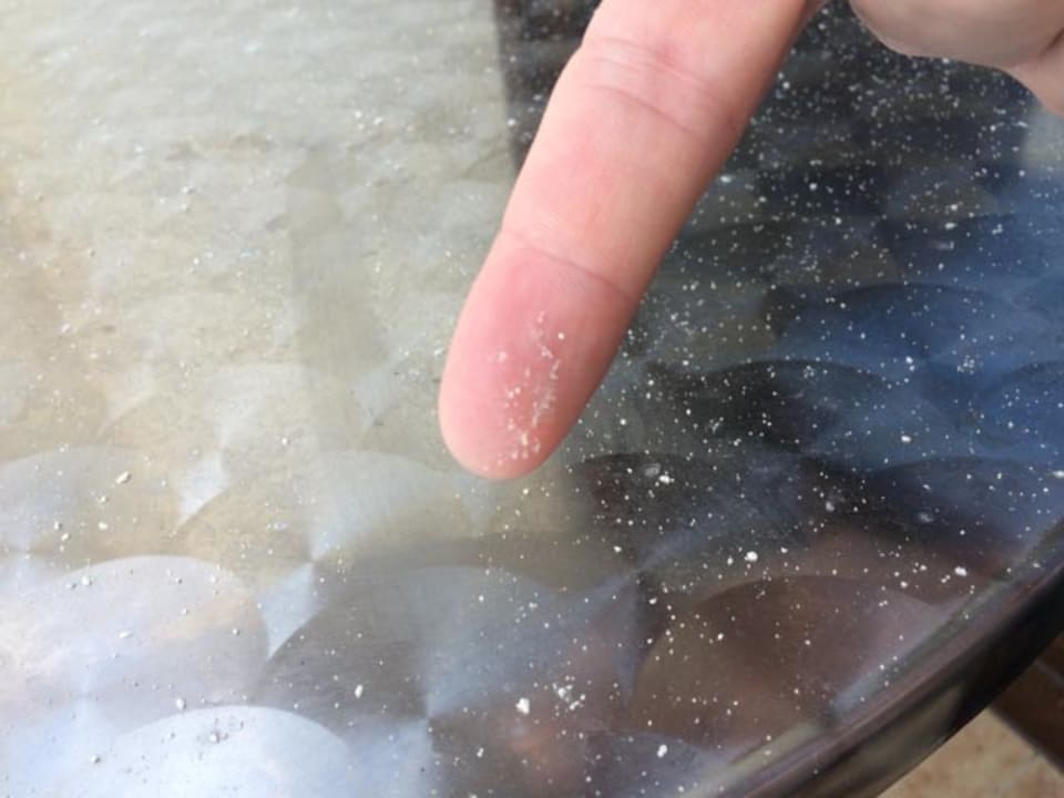 Zimmer10/2015 Teile der Fassade bröckelten bei jedem Windstoss ab - Balkontisch